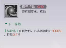 ● 真元护体:仙魔点够的话点满可以加3秒的1000%法术防御和3.75%的生命护盾。(必选)