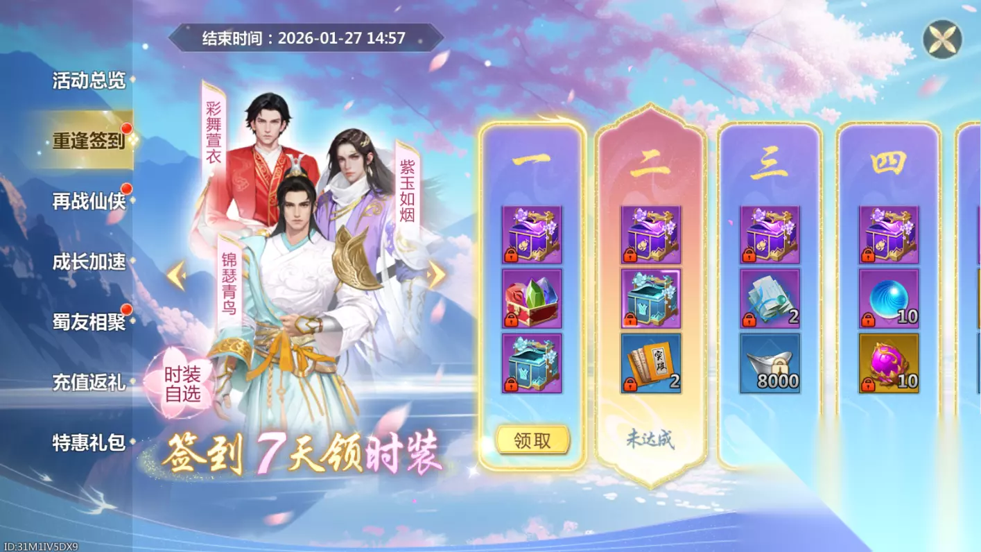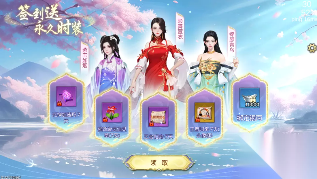 重逢签到 回归后每日签到都会获得成长大礼盒,内含纯洁仙灵草、仙灵领悟丹、锁灵珠等超值游戏道具; 只要签到满2天就可以获得永久灯牌自选包一份,时长缩短,加速你的外观升级;签到满7天还会获得永久时装一份!丰厚奖励期待你的归来~