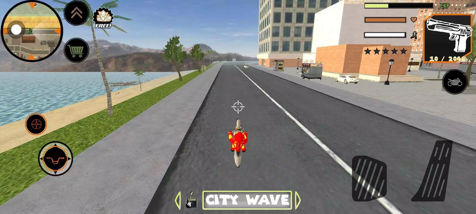 我发现个好玩的,只要骑这辆白色摩托方向键,往后拉就可以翘起来,正版盗版都可以