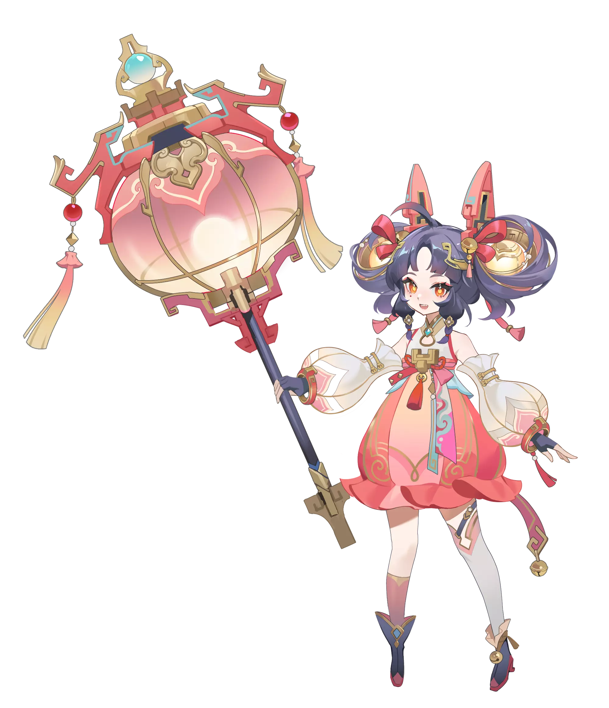 在武器设计上,武器 “照夜清” 以大灯笼为原型,采用榫卯拼接工艺,既体现了传统工艺的精巧,又充满奇幻色彩。灯笼造型圆润可爱,与角色整体风格相呼应,同时在灯光效果的设计上,让灯笼能散发出柔和却明亮的光芒,仿佛能照亮黑暗,驱散魍魉,契合角色明察秋毫、正邪立判的能力。