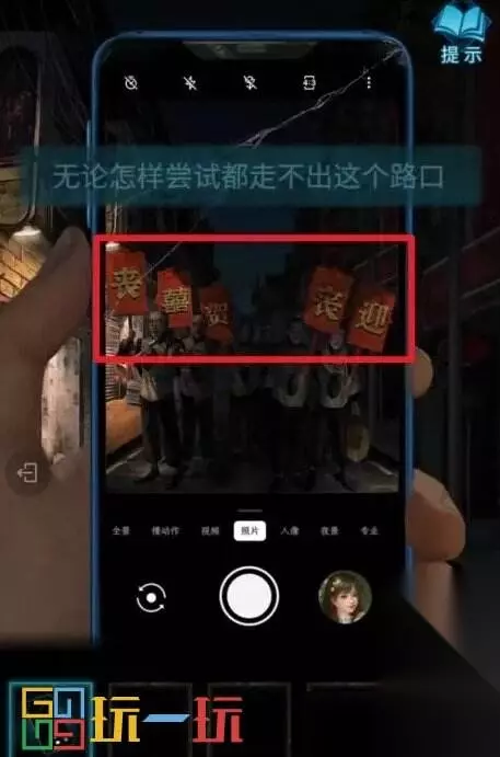 图20 21.来到最左边没人的街道,使用手机观察,得到线索:丧、囍、贺、丧、迎。