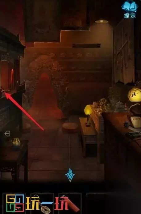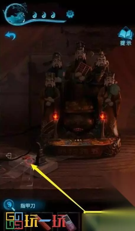 图30.1 31.点击右边的开关,关闭第二个开关,在供桌上得到发光的【小元宝】。