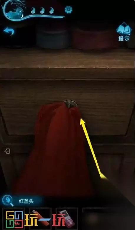 图38 39.点击右边货架上的抽屉,使用【红盖头】打开抽屉,得到【囍烟】。
