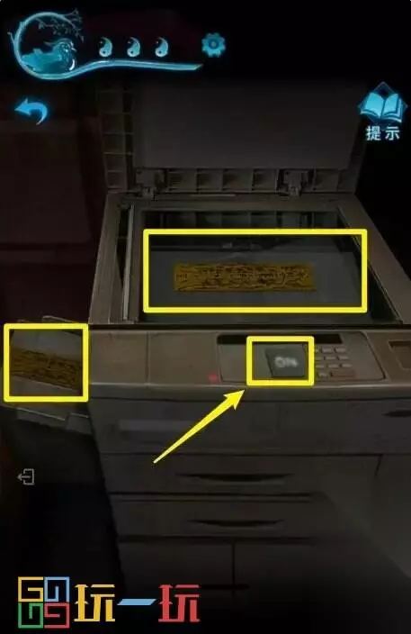 图47 48.点击打印机,将【空白符纸】和【符纸】放入打印机,点击开关,得到两张【符纸】。