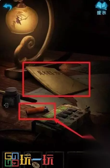 图33 34.点击左边架子上的书,在书中得到线索:铃铛-大凶、花轿-大凶、老树-中凶、棺材-中吉、镜子-小凶,对照书中的图(如图34.1)。