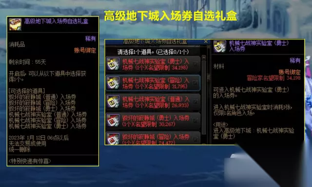 【三】6张高级地下城自选入场门票。从这个门票里,能选择机械战神勇士级入场券,还是非常香的。