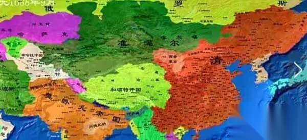 但历史中的葛尔丹可视一代枭雄哦!葛尔丹最辉煌的时候,你们可以看看下图,可以说他的疆土和大清朝不分伯仲!