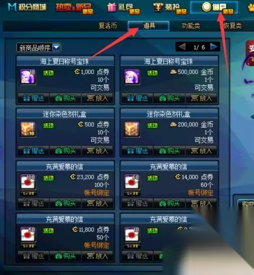 2.在商店里的道具栏里的道具按钮里