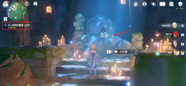 4、击杀附近的丘丘人后,和雕像完成对话,就可以获得后续任务线索,如下图所示。