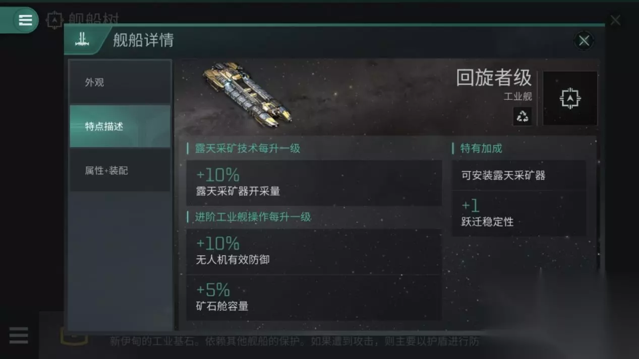 eve手游平民选什么势力好?eve手游中,平民最好的工作就是坚持采矿,累积资源,从中获利,当矿工自然也有矿工的路子,233乐园小编来推荐一个适合矿工生存的势力。 eve手游平民选什么势力好? 联合矿业:全宇宙独此一家,矿工的不二之选 联合矿业的舰船跟星捷运的舰船一样,是有着科技限制的。舰船类型也分为两个大类,勘探护卫舰和采矿驳船。 勘探护卫舰只有冲锋者一种,其下有四个型号,采矿驳船则有三种,它们的采矿性能都是往上以次递增的。毕竟作用都是挖矿,就只是挖得越来越快和装得越来越多罢了。不过从勘探护卫舰到采矿驳船,其采矿效率也会因为装备的改变而大幅变化,大概提升3~4倍。所以专精矿业的玩家一定要在到达T7 时,尽快开上第一种采矿驳船——回旋级。