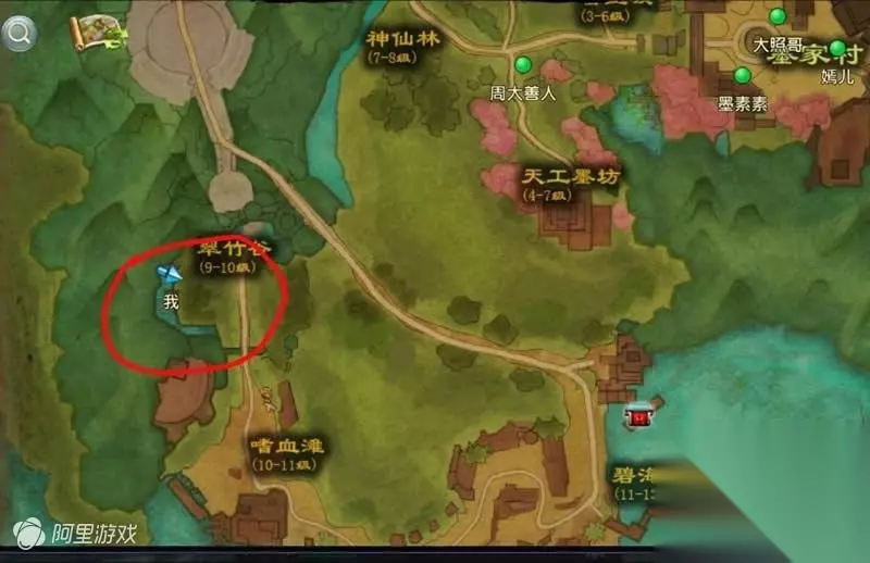 5.找到 金毛吼 (金毛吼 在 下图 树林的位置)