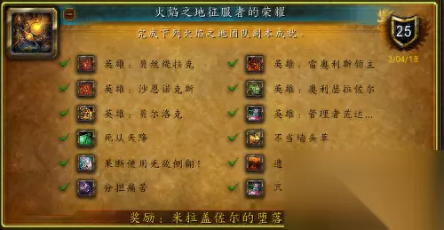 正题: 今天小编为大家带来的事85级大裂变版本的【火焰之地征服者荣耀】的团本成就。 之前小编写的团本成就龙攻略,基本都可以单刷完成,而今天【火焰之地】团本中的,有个成就实在无法单刷完成。 (只能建议:多组好基友或集合石、世界频道,大家约一下,1CD也可以拿到成就坐骑的)