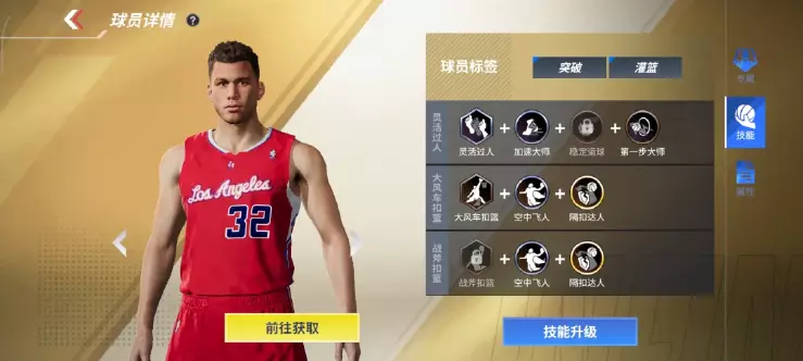 格里芬作为一个大前锋,居然配备了灵活过人+加速大师+稳定运球的技能,可以说在大前锋的位置上,比他高的没他快,比他快的力量没人比他强!怎么打都是错位!