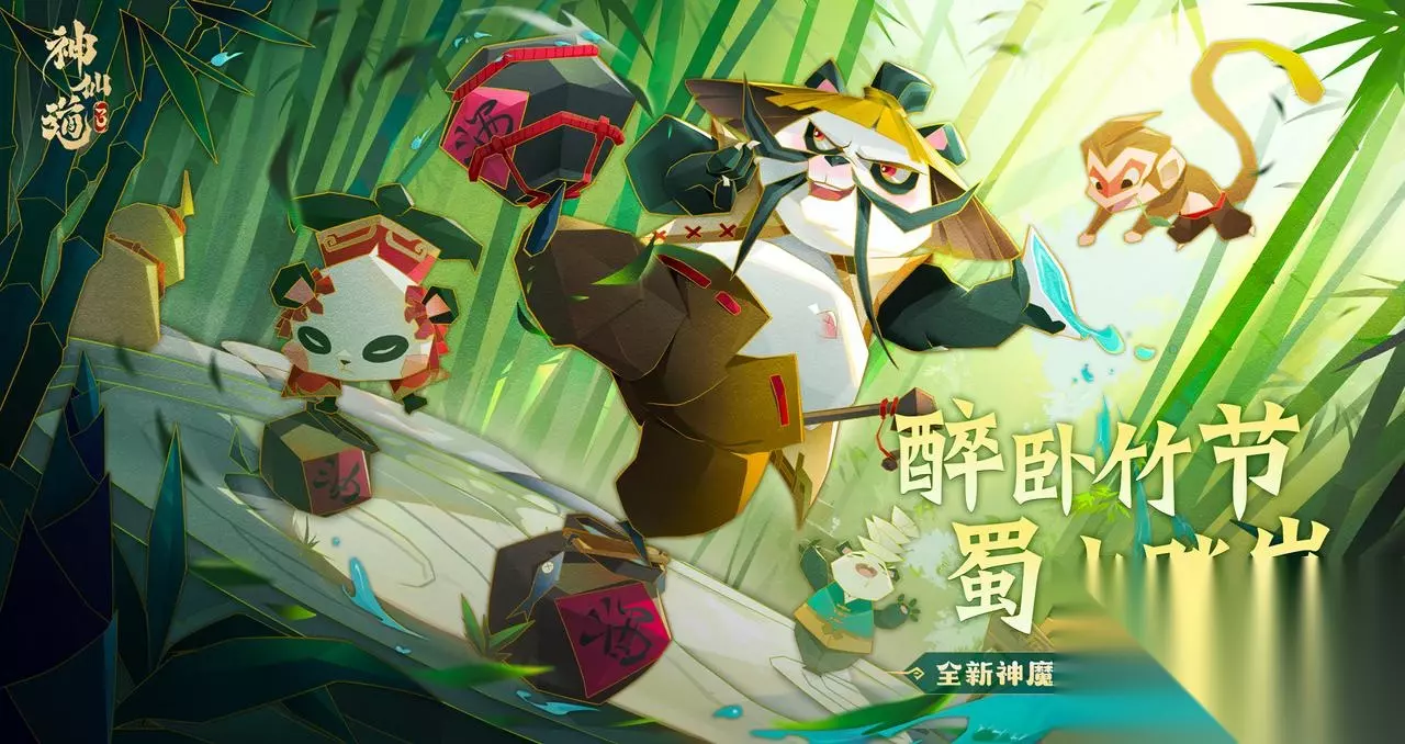 不想成大仙的熊猫不是好熊猫!《神仙道3》公测已经有一段时日了,我们将在6月21日游戏更新后,迎来一位全新伙伴——熊猫酒仙╭(′▽`)╭(′▽`)╯熊猫酒仙既身为武圣,也是一位无双神魔伙伴,在三界无人敢对他不敬!这位神秘的熊猫伙伴究竟有什么来头,他真的像传说中那般厉害吗?快跟小精卫去了解一下吧↓ 相传,这只熊猫原是那蚩尤的坐骑,人们为抢占资源挑起战争,后来蚩尤被轩辕黄帝打败,那熊猫只得逃至巴蜀之地,从此隐居山林,成为熊猫酒仙,千年来一直守护着这一方水土。