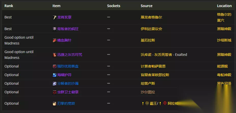 饰品首选龙脊奖章、背叛者的疯狂