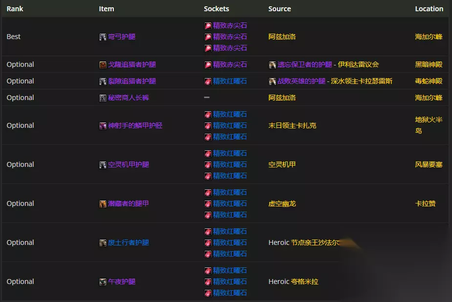 腿部装备首选弯弓护腿,附魔推荐 虚空毒蛇腿甲片
