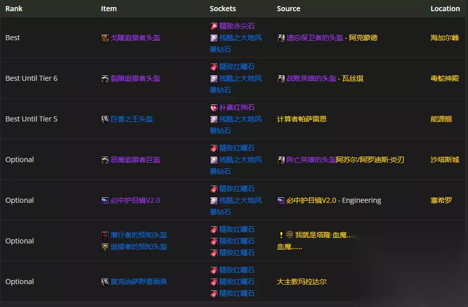 头部装备首选戈隆追猎者头盔,附魔推荐凶暴雕文