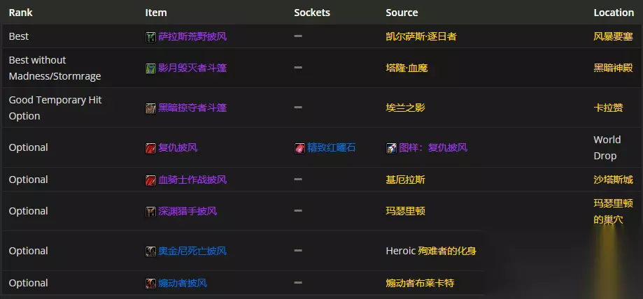 要是挑选披风装备的话,萨拉斯荒野披风是首选。至于附魔嘛,推荐选择附魔披风 - 强效敏捷。