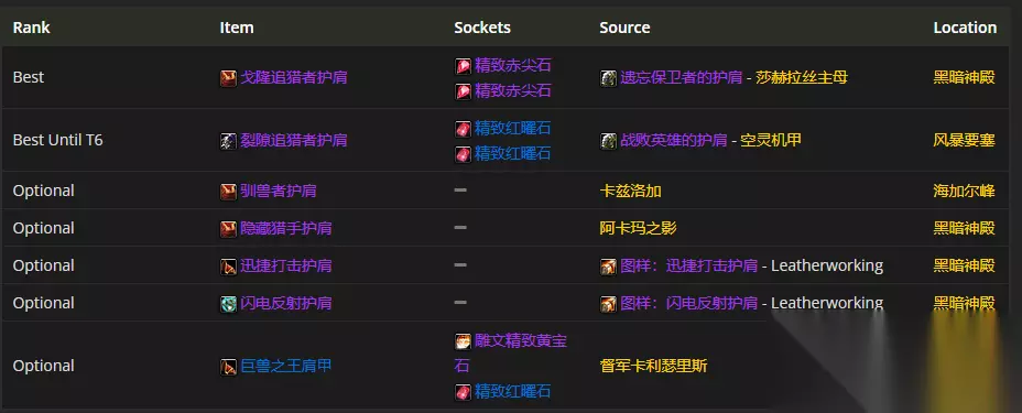 肩部装备首选戈隆追猎者护肩,附魔推荐天灾的威严