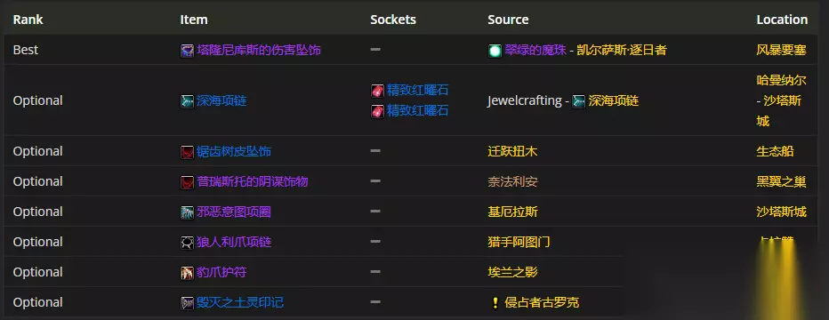 项链首选塔隆尼库斯的伤害坠饰