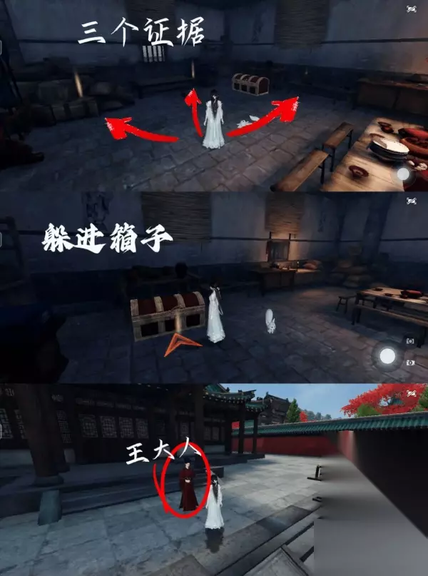 ⒋地址:汴京牢房 找到三个依据(账本、函件、玛瑙) 铁栅栏门被翻开,躲进箱子 与“王大人”对话