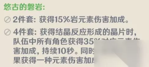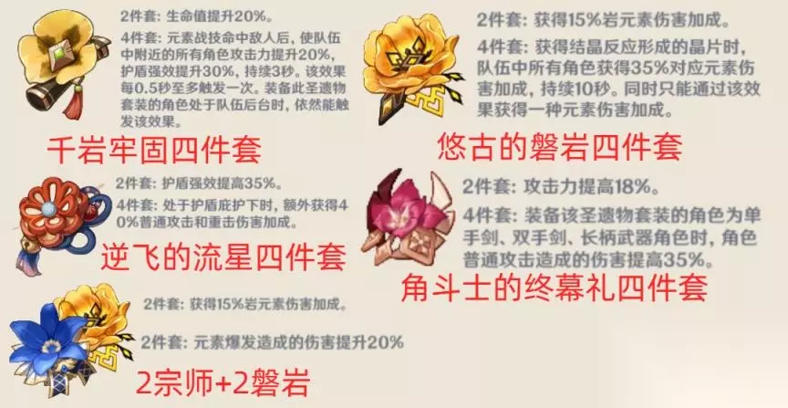 (2)悠古的磐岩四件套: 纯色队使用较多,像是那种反应队很难做到对多种元素都吃到加成
