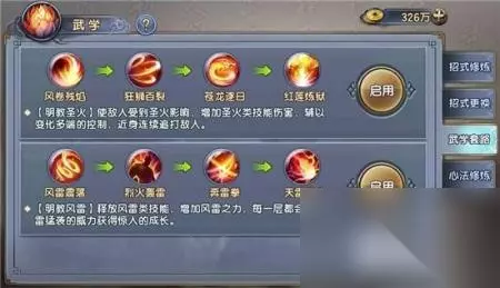 在《倚天屠龙记》这款游戏中有着不少的玩法,其中技能是PK刷本的利器,如果一款游戏单纯的只讲究战力,那么一切看数据的玩法就乏味多了,技能的搭配、心法的装备,特别是战力相差不大的情况下,一些微末的差距都可能改变战局。 不少玩家对于武学的套路还不是很了解,这些套路选择使用之后和自己去搭配有啥不同呢?其实在武学套路中选择完你想要的两个套路之一,就是快捷的更换上这一套的技能,其作用也就是体现在叠加的buff上面。 众所周知每一个门派武学都有两种套路,比如明教的风雷和圣火,在套路当中前三个技能可以很好的叠加三层buff,以明教为例,当明教依次使用完风雷震落、烈火轰雷、奔雷拳之后,就会叠加完3层【风雷】状态,此时再使用天雷猛袭这个技能,伤害值将是飙升。其余门派的技能套路基本上也是如此。