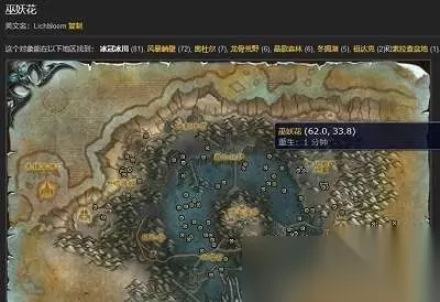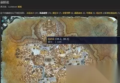 7、风暴峭壁有72个巫妖花的采集点,主要分布在该地图的雪流平原、冰霜堡和丹尼芬雷区域。