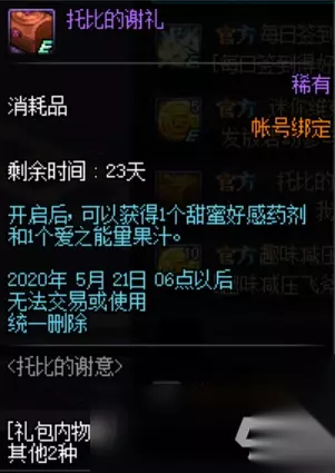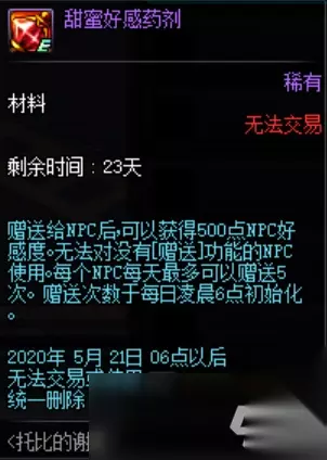 好感药剂是可以增加500点和NPC好感度的奖励。 DNF2020活动 欲望之塔