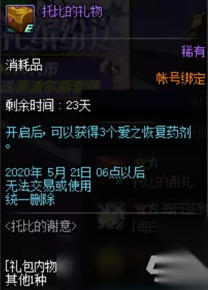 每天登陆获得一个托比的礼物,打开获得3个恢复药剂。