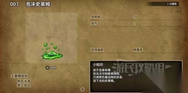 勇者斗恶龙3重制版怪物怎么打?怪物位置在哪?小编今儿为大家整理了关于该游戏的怪物全收集攻略,其中包含了怪物图鉴|位置|物品掉落表等,都是玩家们的刚需,希望给小伙伴们提供方便咯~ 本文部分怪物和位置涉及剧透(包括且不限于剧情后期、地图位置等内容),请酌情阅读。下为防剧透图。 ※本文按照怪物ID排序,想要查看特定的怪物,请翻至指定页面查看。 No.1史莱姆
