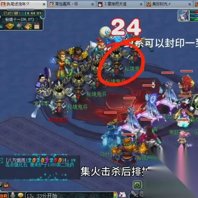 第七关,我们要注意了。地图上的所有狼都不要放过,因为每一只都有可能给1万多的现金。点完所有狼之后,进入本副本最难的怪。首先要封印鬼将,然后集火鬼将。因为鬼将会使用横扫和破血,所以要优先封印。接下来就是瑞兽,这两个怪很容易就可以杀死。 到这里,我们就可以不跳关通关此副本了。最后,我们要选择跳关还是直接杀boss。如果你选择跳关,就要先选择第一个选项。如果你选择直接杀boss,就要先选择第二个选项。 接下来,我们继续前进。 第八关,我们要封印右边的青牛。左边的青牛很容易,杀完青牛之后,我们就可以无脑q了。 第九关,我们要集火点杀前排的幽灵。防御最低的角色防御一回合无压力,我们还剩下30多分钟,只要按照这个方法去击杀,时间上是非常足够的。 最后一关,我们要集火杀后排的护卫。封系可以封前排一到两个鬼将,但不要封太多,否则后排会使用晶清。只要我们杀死后排任意一个怪,熊三军就会一直拉怪。按照瑞兽杀法,速度最高的宝宝防御就可以了,这样就可以成功通关了。 总的来说,这是一个非常简单的攻略。只要我们按照这个方法去打,时间上是足够的。我们只需要花费86分钟就可以通关这个副本了。希望这个攻略对你有所帮助。最后看收益,每个账号进入副本后拥有5万现金和不计其数的物品,但每个账号的纯现金收益为53万,总收益为265万。因此,这个副本是每周推荐的必刷副本,对于一些刚入坑的玩家来说,装备配置也可以以此为目标。