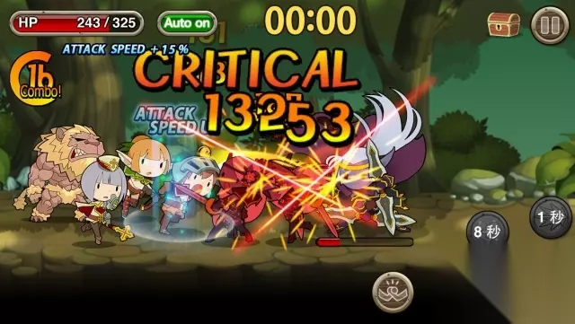 当角色升上 5 级后,可开起自动攻击模式 另外在闯关时,会发现画面上方有倒数计时的设计,倒数计时结束后不代表游戏结束,而是天上会降下陨石攻击,让整体关卡的难度大幅度提高,所以还是建议玩家在闯关时能速战速决,否则碰上陨石时是极难完成关卡的。