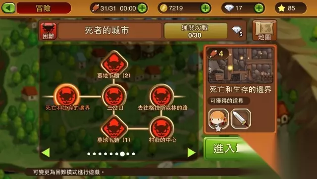 当一个区域的关卡全破后,关卡难度可从普通变更为困难模式