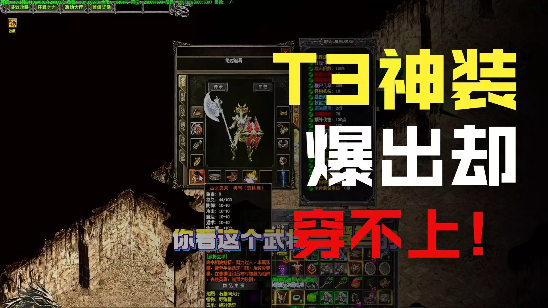 这是1.80公益复古三职业热血传奇的玩法攻略,展示了法师职业的法神装备、技能磁条等内容,还呈现了打怪战斗场景,按要求操作可获取游戏相关资源。
