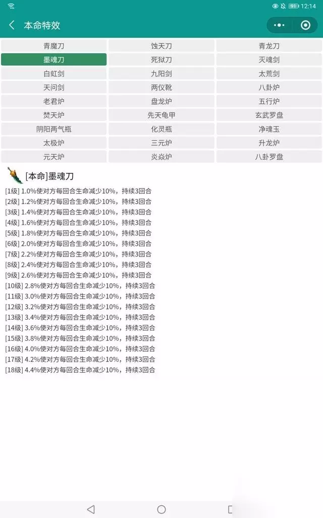 首先说下青魔刀,一般大众都会原则青魔,偷图,界主都很好用,吸血的特性深受各位玩家的喜爱,让我们看下本命法宝的成长进度!