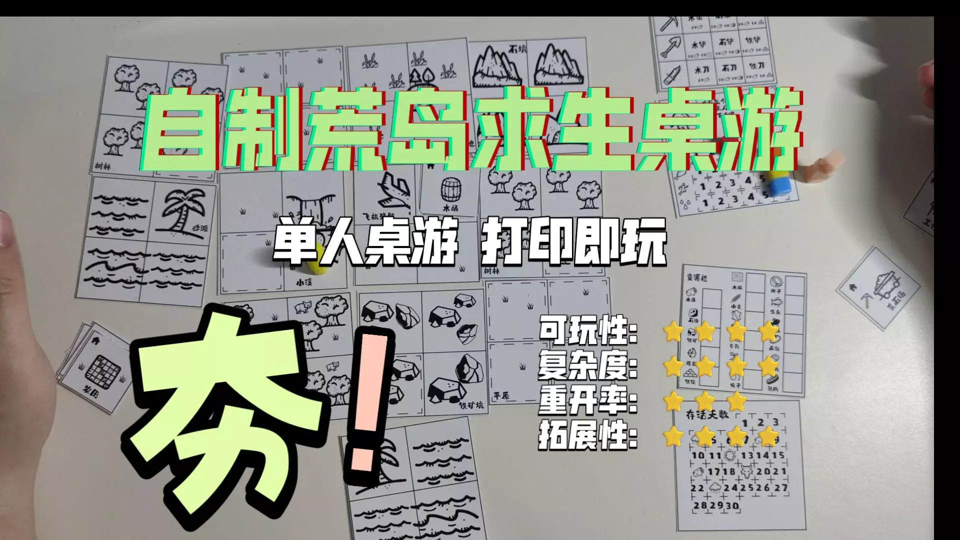 大家好我是白菜! 这次把荒岛生存玩法,完全重构为纯单人可玩的手绘桌游《荒岛求生》,零门槛、节奏快、每一局都有全新体验。 ✅ 核心目标:30 回合内造出「逃生筏」…