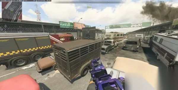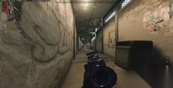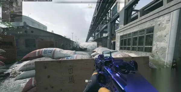 走廊内部可以趴下瞄对面跑来或是蹲下慢走瞄对面架枪敌人,打之前先丢烟雾弹,效果如下图,能很清楚看清敌人