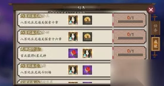 可以看到,比丘尼满级还是很强的,速度有128,攻击也和6星式神一样。除了御魂强化以外, 比丘尼技能获得任务获取比丘尼技能的任务非常丰富,包括与各种角色的对决,完成各类探索任务,就像是要带着比丘尼再次全面体验游戏的每一个环节。