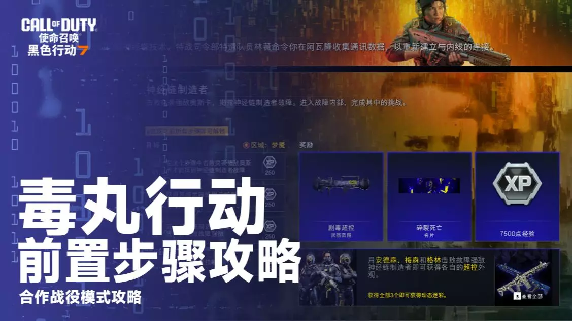 这是《使命召唤22:黑色行动》最终任务毒丸行动步骤10“神经链制造者”的游戏画面,展示了玩家在不同场景中战斗,完成前往新区域、消灭敌人等任务目标的过程。