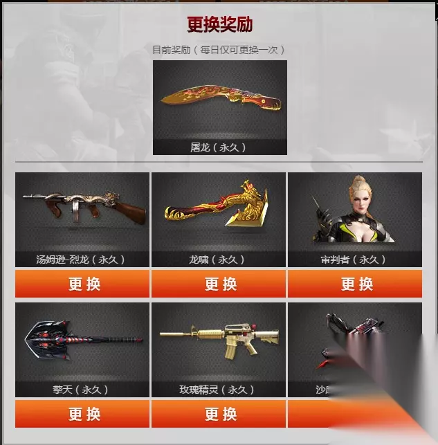 cf每日一抽活动时间:2016年10月26日-11月9日 cf每日一抽活动奖励:屠龙尼泊尔,汤姆逊烈龙,龙啸手斧,审判者,擎天,玫瑰精灵,沙鹰修罗