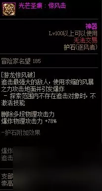 【护石提升率】 伤害提升率30% 【护石解析】 优化了技能演出和删除控制更好打破招,加大范围和缩减演出时间很大程度提高了实用性,强度可观,可以作为备选项