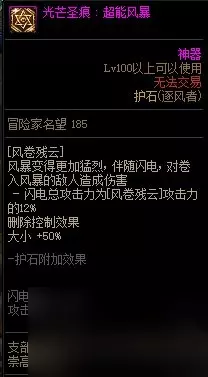 【护石提升率】 伤害提升率33% 【护石解析】 护石本身强度尚可,技能本身也是风法较为核心的爆发手段之一,但偶尔出现伤害大幅度丢失的BUG没有被修复,通常情况不推荐使用