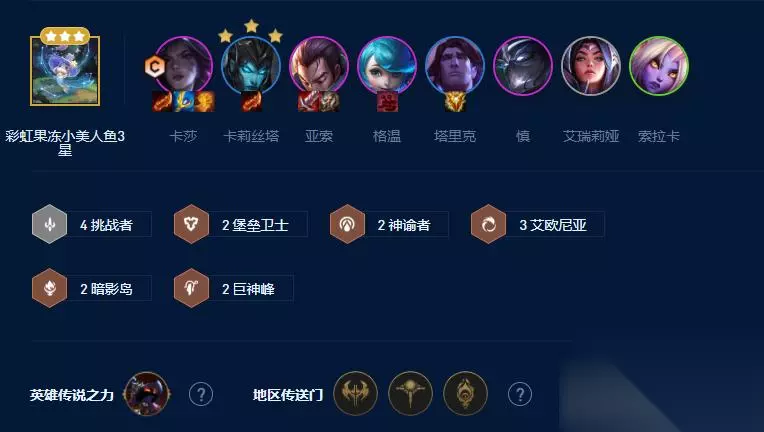 主C4个,辅助3个,3保4装备不够分,所以得均匀培养。亚索饮血泰坦,滑板鞋一把羊刀不3不要给第23件,宝石1个鸟盾就够了,装备不够做第二个,这仨是第一优先级。其次卡莎、格温捡垃圾做法伤装,最好是有偷偷,偷偷配珠光是绝配。卡莎最好有豪华的装备来保证阵容在前15秒内打出减员或者压血线,帮助滑板鞋过第一个前排。 英雄传说之力及地区传送门分析 英雄强化必须选择小法,第一个刷金彩能保证全队技能暴击。但刷银的就只有最强的棋子享受,所以如果刷银的珠光,建议直接跑路,玩别的去。城邦优选给装备的,角斗场、迅捷蟹、坟场、集市等等都可以帮你补4个核心的空装备格。 强化符文分析 珠光只拿金彩,如果小法的第一个强化给你定制了银色,直接跑路把,玩主流阵容去,其次优先拿施法即是防御,保证亚索格温七进七出,剩下只要是战力拿满3个,保持社交加的战力多,需要你没鸟盾时拿。