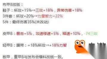 布甲牵涉到固定面板的改变,根据打造提升很难量化. 整体来说应该是在5~8之间的提升 4、皮夹 提升了暴击、速度,失去了面板的攻击力 削弱看打造:在1-3% 5、轻甲 主要是腰带由所有功变更为力量智力的百分比提升 提升至少4%以上 整体分析,跨界角度