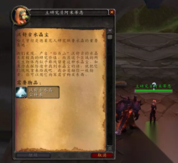 任务开启: 第一歩先到影月谷(59.58 )附近,找NPC摩德奈,他会到处走跟他说话开启虚空龙声望的第一个任务,直到完成【虚空之翼血誓】,才正式开始获取虚空龙坐骑的系列任务。