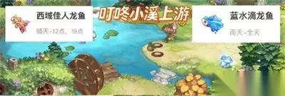 奥比岛手游龙鱼钓鱼位置一览 1.位置:青木森林叮咚小溪上游 晴天:西域美人龙鱼 雨天:蓝水滴龙鱼 其他:幻紫荧光鱼.葵花鱼 2.位置:青木森林叮咚小溪中游 晴天:蓝衣美人龙鱼 雨天:漂亮的公主龙鱼 其他:美凤蝶龙鱼.炫彩飞仙鱼 3.位置:青木森林叮咚小溪下游 晴天:紫霞仙子龙鱼.南海吉祥龙鱼.东海如意龙鱼 4.位置:奥比斯雪山 晴天:荧光龙鱼.蓝精灵龙鱼.瑶池凤仙龙鱼