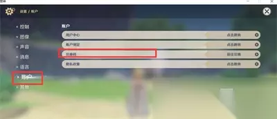 3、在设置界面里,点击账号界面,可以看见兑换码的输入栏;