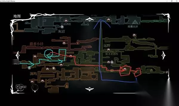 首先开局两张图都没什么好说的,就是尽可能的快点走就是了,Boss别似就行,有实力可以用一用下劈小怪的skip之类的,但是不追求什么太高成绩的话其实也没必要。从出生地到骸骨,一气呵成的拿小白波和打钟道兽。具体路线可以去看视频,我记忆力不太好,这个图我自己走其实都忘了怎么走了,反正就是开局直接尽量往上走去拿能力和打钟道兽 打完钟道兽以后直接向右走,就是到有龙牙哥守门的那个地图。我看了一个速通教学,他是直接硬钢龙牙哥走猎者小径的。我个人是不太推荐这么走,建议就是直接下去到右下角的深坞(参考自世界纪录那个路线)