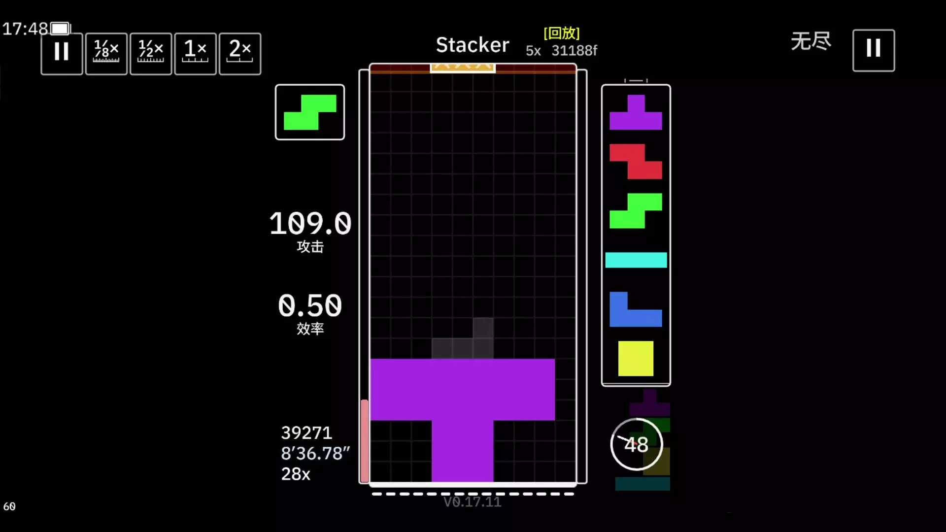 这是玩家在《TETR.IO》的Blitz模式下的俄罗斯方块游戏回放,玩家取得了685673分的个人最佳成绩,还达成了多次ALL CLEAR,操作技巧出色,在本国排名30,全球排名990。